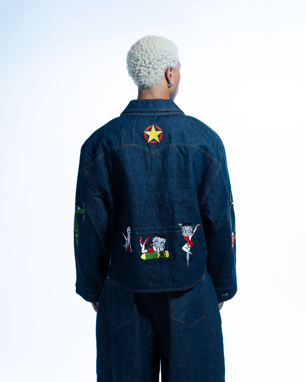 She's the bomb, she's the Betty, She's the Boop. Beautiful Navy denims, silhouetted, form fitting and lightweight. It's a statement.