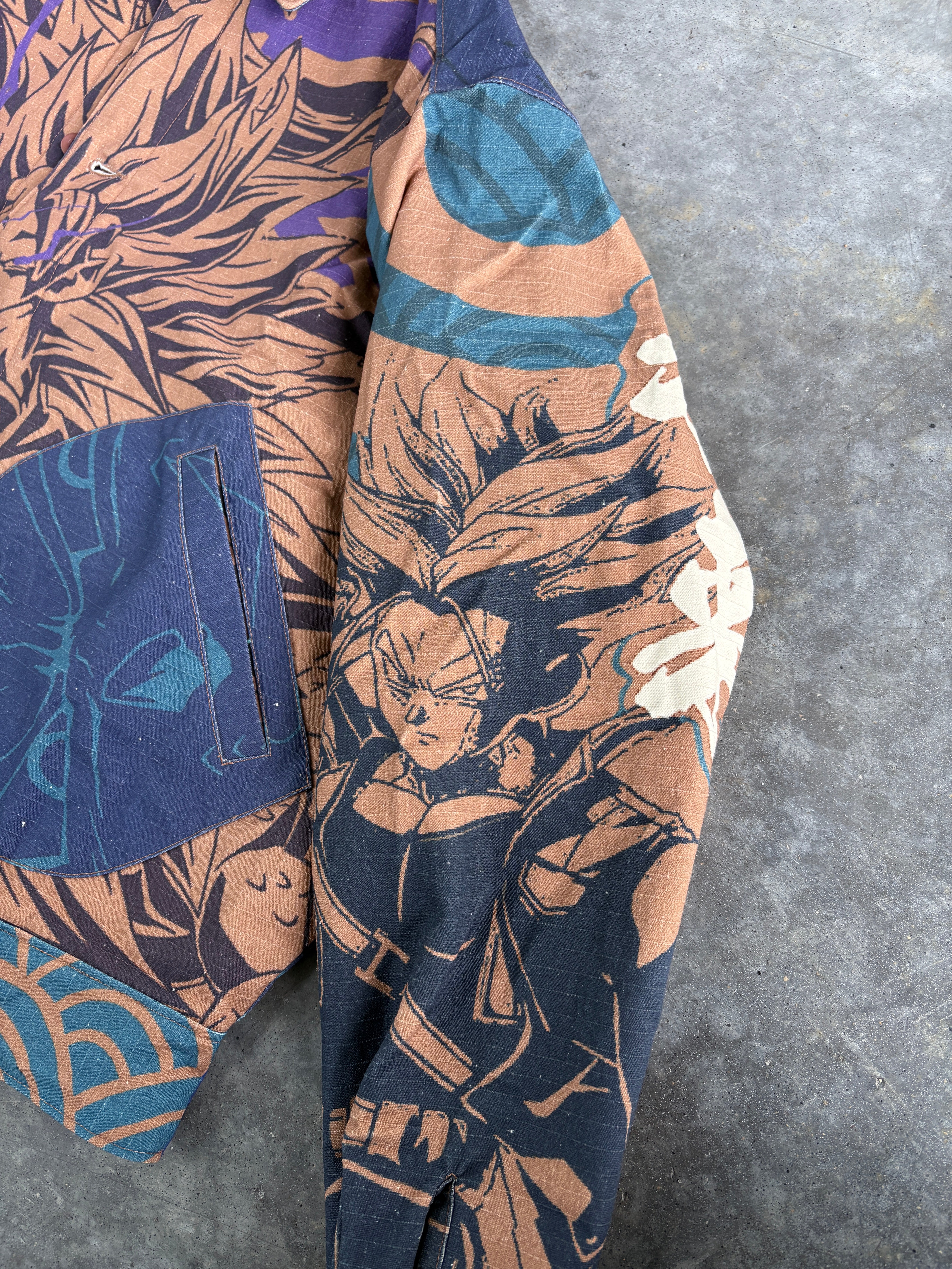 Be a stylish Saiyan featuring all your favorite characters on one button up.