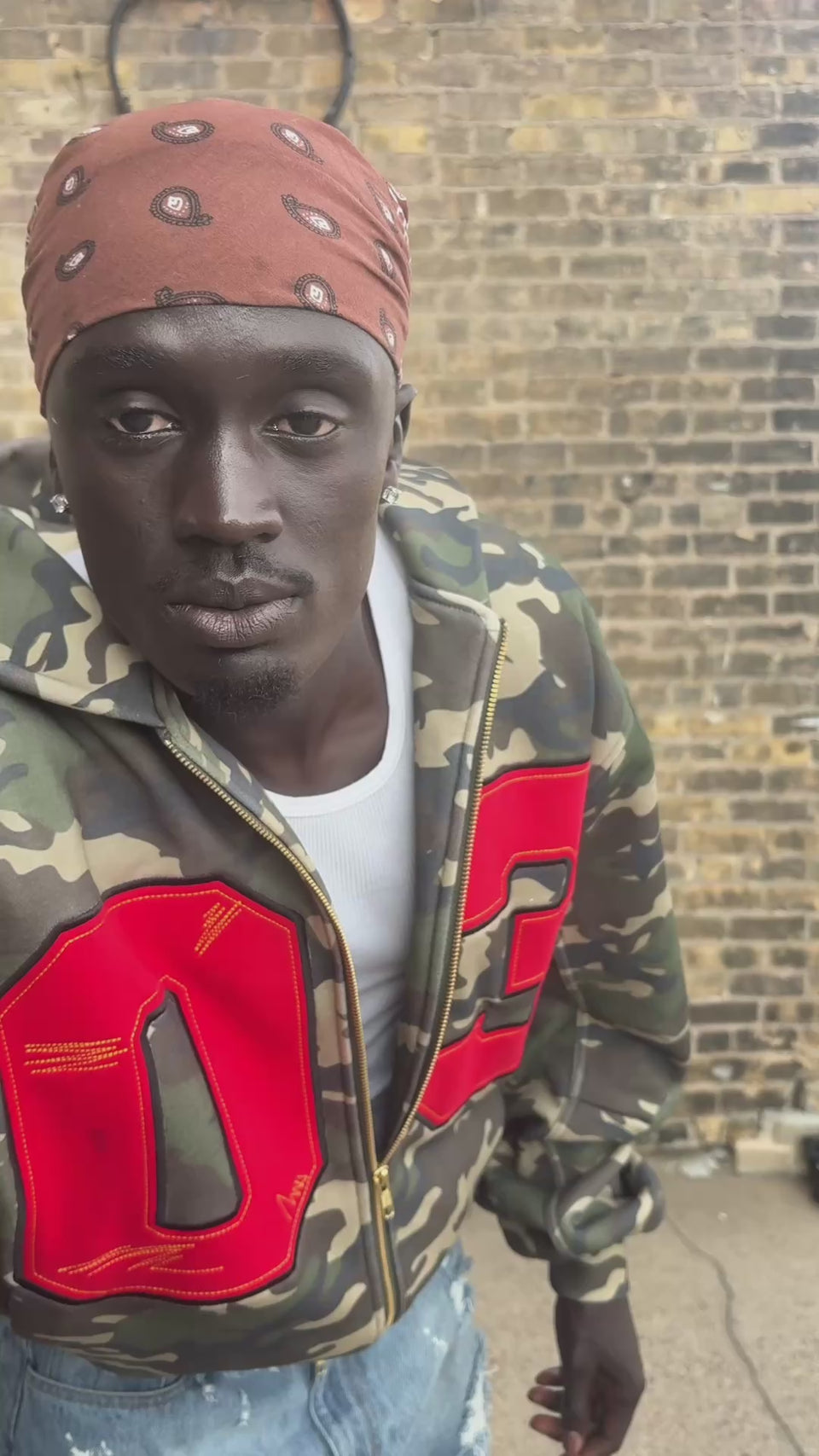 Our Lost wandering swordsman in a stylish camo zip up, Fits like a cloud with a nice cuffed waist.